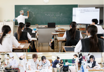 iPadを全生徒に導入し、デジタル教科書やモニターを授業に用いるなど、杉森高校には最先端のICT環境が整っています。こうした取り組みが国に評価され、令和7年度は、ICTを活用した探究的な学びを強化する高等学校DX加速化推進事業の採択校となることが決定しました。今後もICT教育のさらなる充実を図りながら、データに基づいた個別最適な学びを実施し、生徒の学習意欲の向上と目標実現へと取り組んでいきます。